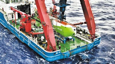 “探索一号”科考船回收“奋斗者”号全海深载人潜水器。新华社发(杨宁军摄)