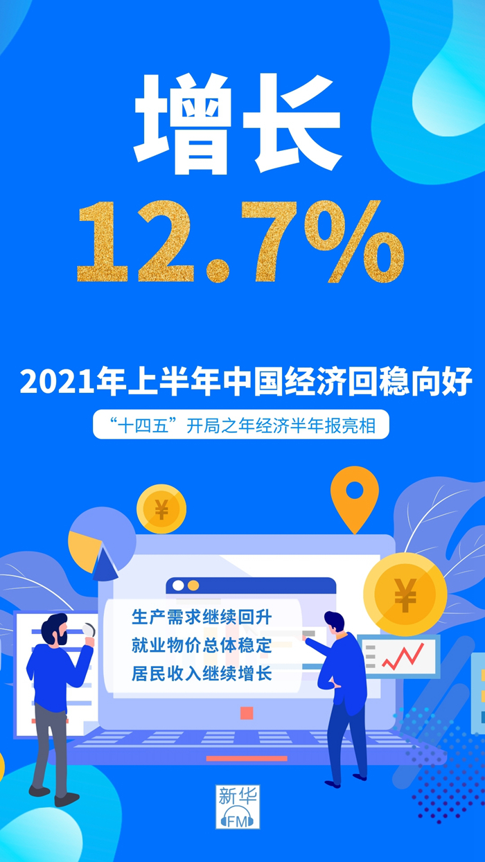 “十四五”开局之年经济半年报亮相!国家统计局15日发布数据,初步核算,上半年国内生产总值532167亿元,按可比价格计算,同比增长12.7%;两年平均增长5.3%,比一季度加快0.3个百分点,经济发展呈现稳中加固、稳中向好态势。