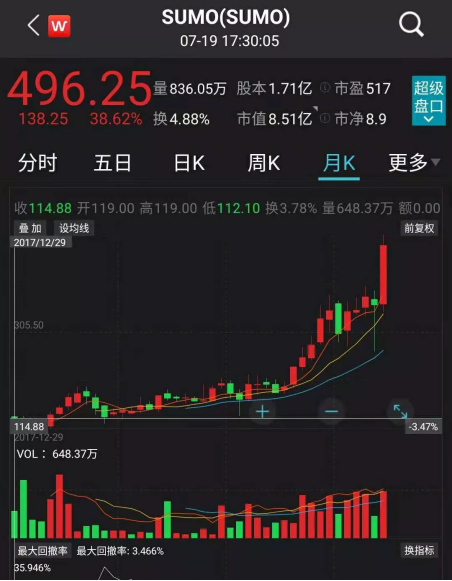 Sumo 在2017年登陆伦交所另类投资市场(AIM)时的发行价为100便士,结合本次交易价格,Sumo市值在4年时间里涨幅已经超4倍。