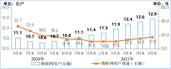 图4 2020-2021年6月末物联网终端用户情况
