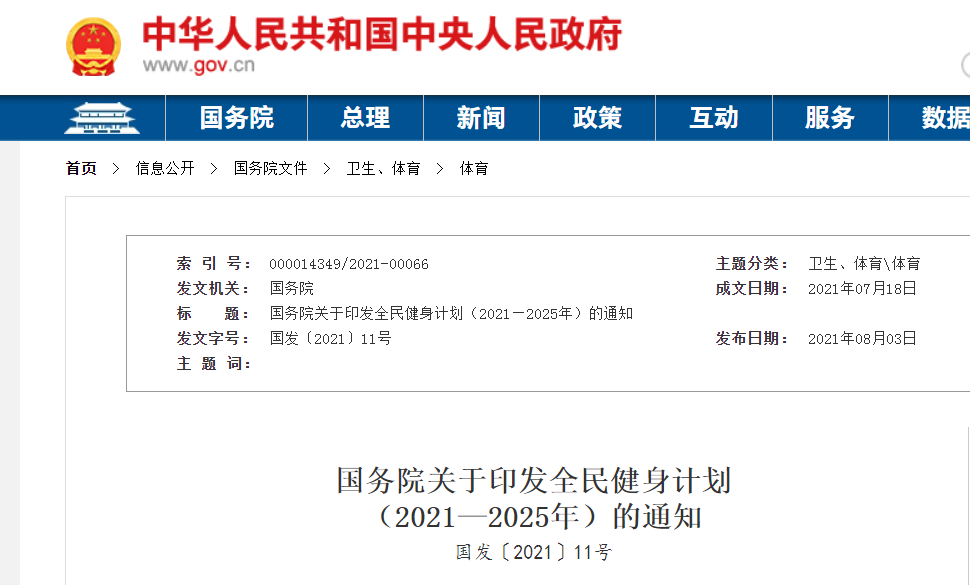 国务院日前印发《全民健身计划(2021-2025年)》(以下简称《计划》),就促进全民健身更高水平发展、更好满足人民群众的健身和健康需求,提出5年目标和8个方面的主要任务。