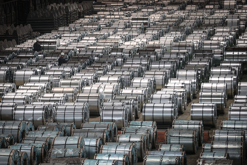图为工人在鞍钢集团鞍钢股份冷轧厂四、五号镀锌线镀锌板卷成品区检查产品。新华社记者 潘昱龙 摄