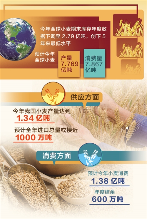 目前来看,全球小麦减产、价格上涨对我国小麦供需基本面没有产生明显影响。供应方面,今年我国小麦产量达到1.34亿吨,库存充足;前7月,累计进口小麦625万吨,预计全年进口总量或接近1000万吨。消费方面,预计今年小麦消费1.38亿吨左右。供应总量略大于消费总量,年度结余600万吨左右。