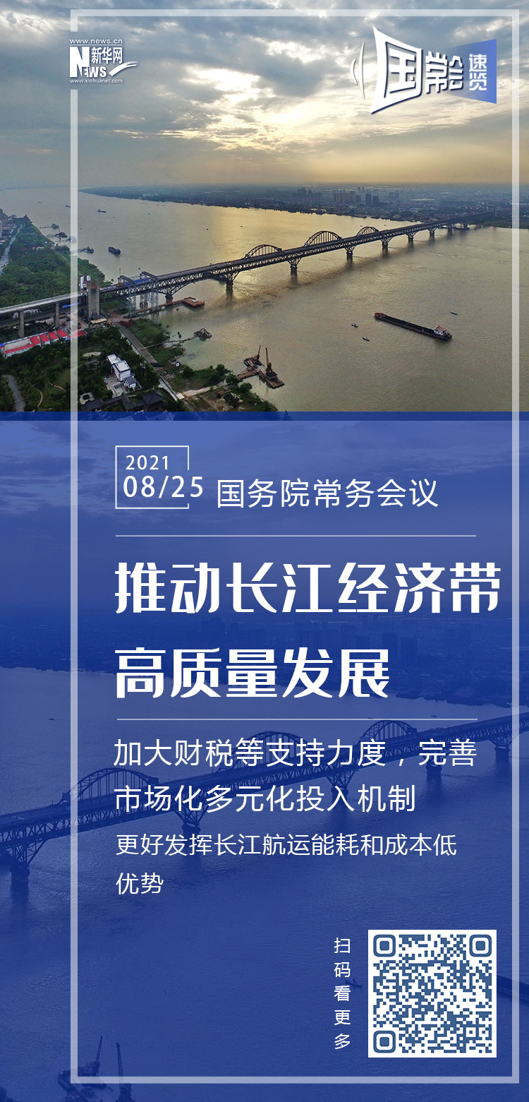 北京8月26日电(黄博阳 樊珊珊)25日召开的国务院常务会议指出,全面推动长江经济带发展是重大国家战略,要贯彻党中央、国务院决策部署,加大财税等支持力度,完善市场化多元化投入机制,汇集各方力量,生态优先、绿色发展,推动长江经济带高质量发展。