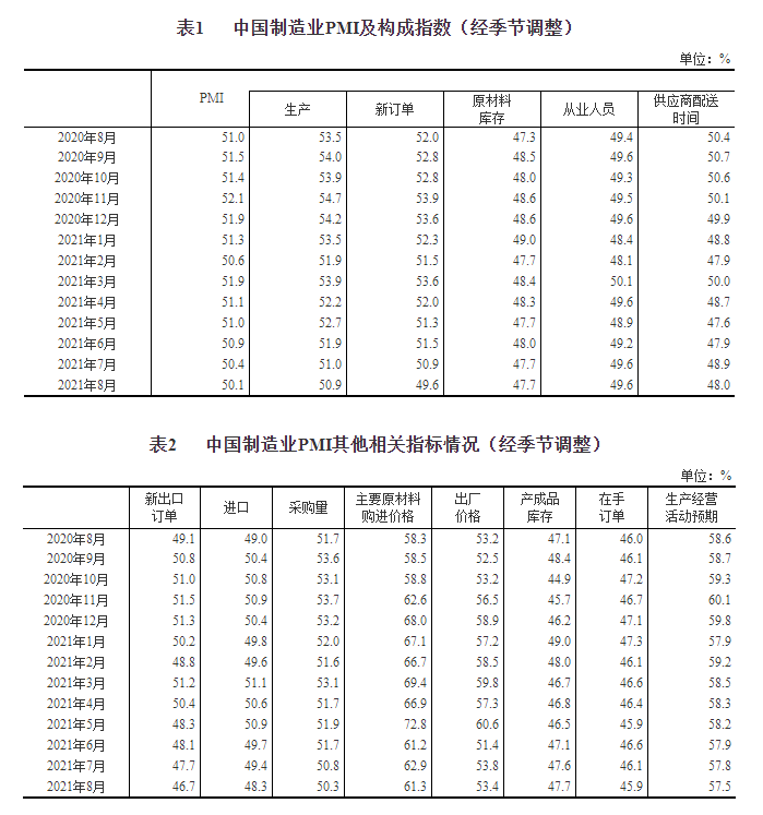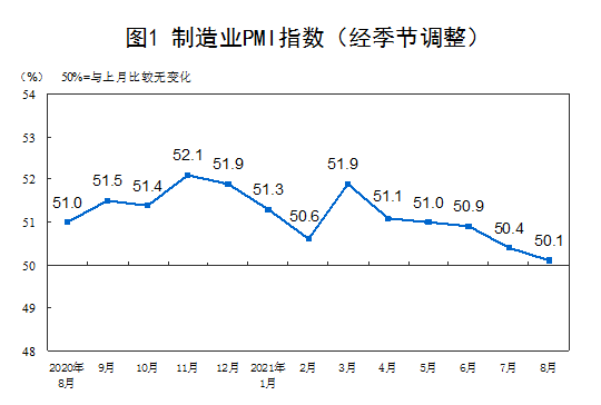 8月份,中国制造业采购经理指数(PMI)为50.1%,继续位于临界点以上,低于上月0.3个百分点,制造业扩张力度有所减弱。