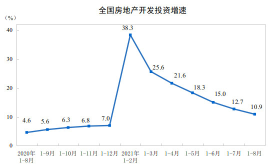 1—8月份,全国房地产开发投资98060亿元,同比增长10.9%;比2019年1—8月份增长15.9%,两年平均增长7.7%。其中,住宅投资73971亿元,增长13.0%。