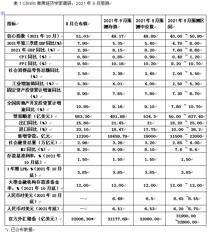 2021年8月最佳预测经济学家9月预测(房地产开发投资):