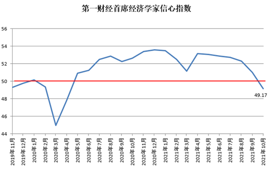 本期,第一财经研究院发布的“第一财经首席经济学家信心指数”为49.17,自2020年5月以来首次低于50荣枯线,经济学家们认为,未来一个月我国经济将面临较大压力,房地产调控政策、拉闸限电等举措均将对整体经济有所影响。