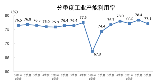 三季度,全国工业产能利用率为77.1%,比上年同期上升0.4个百分点。