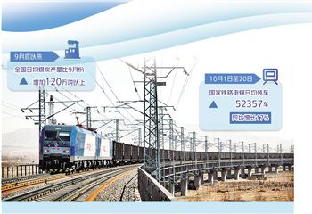 10月1日至20日,国家铁路电煤日均装车52357车,同比增长17%。截至10月20日,全国363家铁路直供电厂存煤3504万吨,较9月底增长18%,平均可耗天数达16.6天,较9月底增长2.6天。