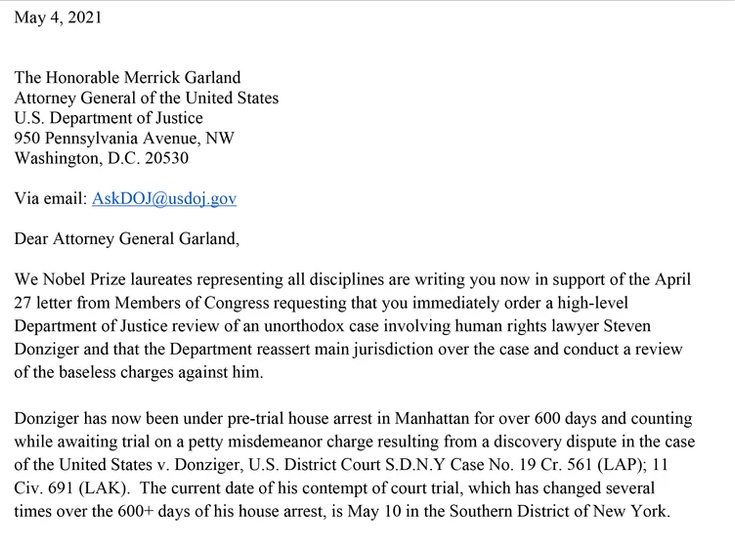 今年5月4日,68名诺贝尔奖得主联合致信美国司法部长加兰,呼吁司法部立即就唐齐格一案展开高级别审查,认为针对唐齐格的指控“毫无根据”。不过,这显然并未阻止美国法庭判决唐齐格“藐视法庭”罪名成立,监禁6个月。