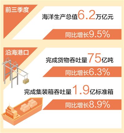 本报北京11月10日电 (记者刘诗瑶)日前,自然资源部发布数据显示:我国海洋经济复苏进程稳健,市场需求逐步回升。初步核算,前三季度海洋生产总值6.2万亿元,同比增长9.5%。
