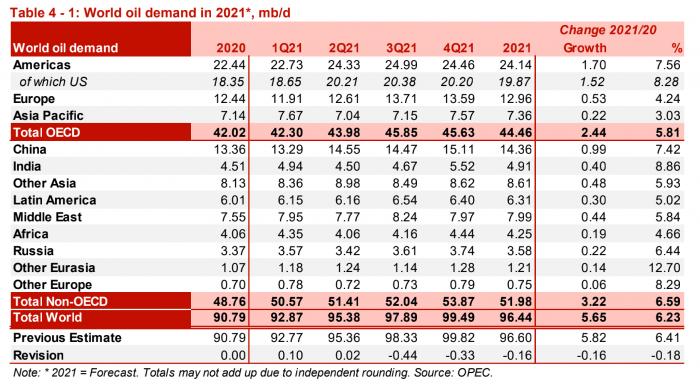 不过尽管如此,欧佩克仍预计明年的需求将高于疫情前的水平,预计明年的石油需求将达到1.006亿桶/日,比2019年多50万桶。