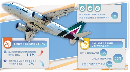 航空公司的收入继续以高于成本的速度下降。初步财务调查结果显示,2021年第三季度的客运收入比疫情危机前同期的2019年第三季度下降34%,而同期货运收入在强劲的需求拉动下增长65%。航空公司总收入下降约30%,但相比第二季度有很大改善。