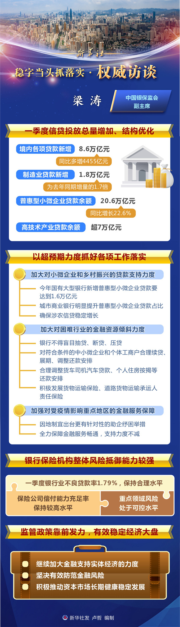 金融是实体经济的血脉。当下,经济下行压力加大,不少企业经营困难,银保监会采取了哪些措施助企纾困、稳定宏观经济大盘?银行业保险业风险形势如何?如何应对外部复杂环境对我国经济金融带来的影响?中国银保监会副主席梁涛日前接受了新华社记者采访。
