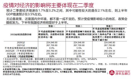 盛松成预计,“我国二季度经济增速在1.7%~3.2%之间。这个宽度比较大,但是其中可能性比较大的是在2.1%左右。如果二季度经济增速在2.1%左右,那么上半年GDP增速预计在3.5%左右。从全年角度看,如果三季度能达到5.5%,四季度达到6%,那么今年全年GDP还是有可能达到5%。”