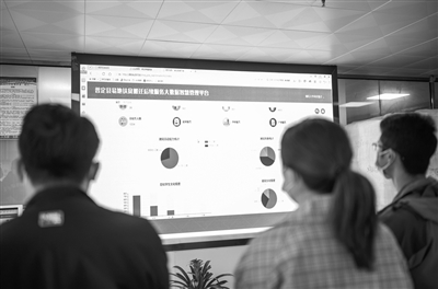 贵州省安顺市普定县采用大数据助推易地搬迁安置点智慧化管理。图为来访者在参观普定县易地扶贫搬迁后续服务大数据智慧管理平台。 新华社记者 陶亮 摄