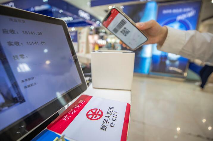 5月3日,一名重庆消费者在商场收银台使用数字人民币进行支付。新华社记者 黄伟 摄
