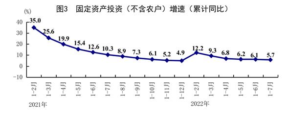 看投资。1-7月份,全国固定资产投资(不含农户)319812亿元,同比增长5.7%,比1-6月份回落0.4个百分点。