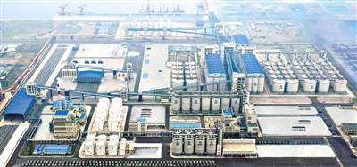 由中国船舶集团海装风电股份有限公司牵头,联合相关单位自主研制的“扶摇号”浮式风电机组浮体平台上配备6.2兆瓦抗台型I类风力发电机组,在深远海应用场将依靠九个对称分布的悬锚链系泊实现固定。图为完成总装的国内首台深远海浮式风电装备“扶摇号”在茂名广港码头静待拖航(无人机照片)。记者 刘大伟 摄