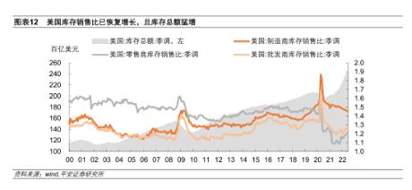 随着美国从补库存过渡到去库存,可能会放大中国外需回落的压力。美国批发商和零售商的库存销售比已进入回升通道、制造商的库存销售比持续去化,美国库存总额的同比增速6月达到18.48%的历史高位。