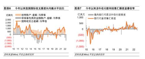 1)国际收支已从2021年的大额顺差向均衡水平回归。尽管今年二季度国际收支数据尚未发布,但今年以来境内银行代客对外收付款顺差、银行代客结售汇顺差的变化均指向这一点。