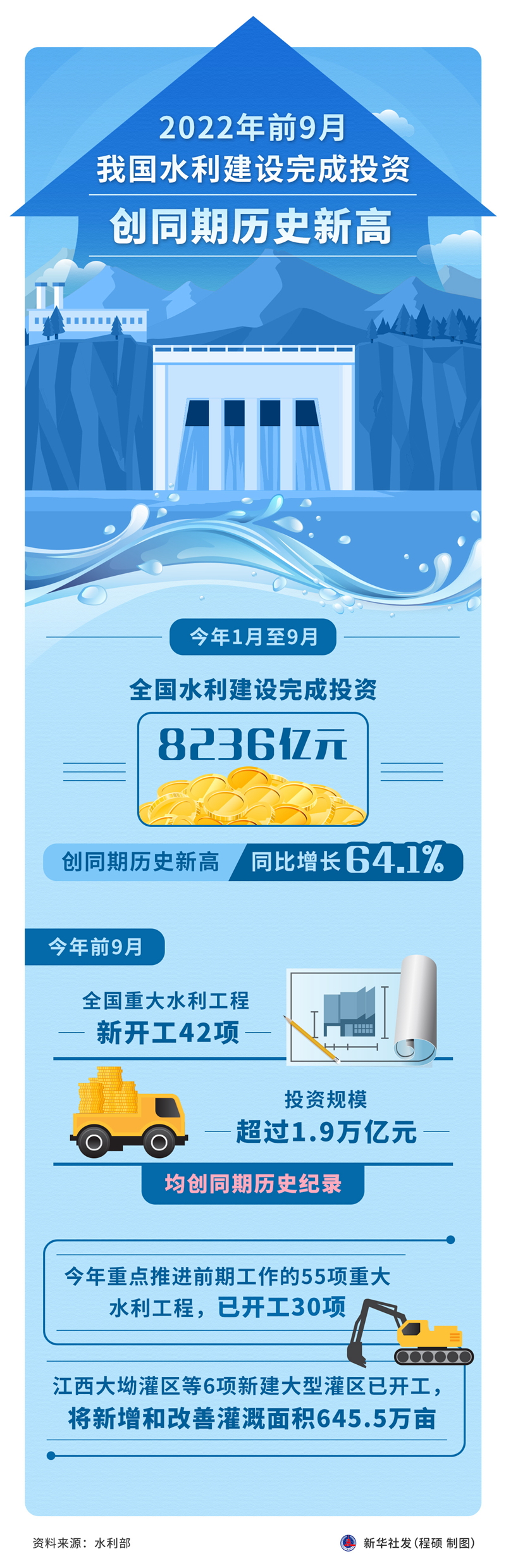 水利部副部长刘伟平11日表示,今年1月至9月全国水利建设完成投资8236亿元,创同期历史新高。