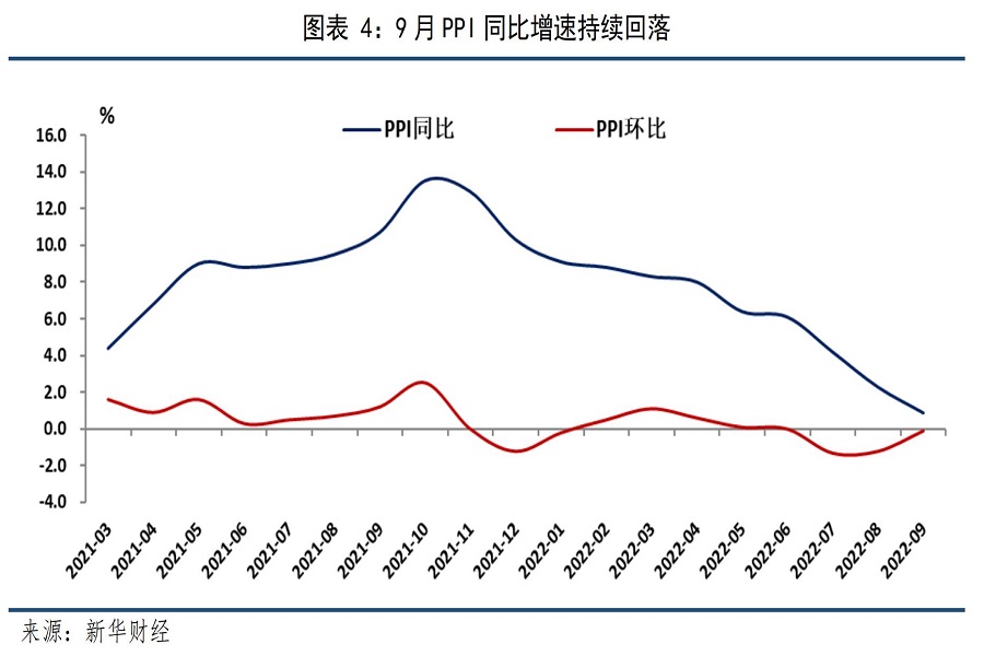 9月份,全国工业生产者出厂价格(PPI)同比上涨0.9%,涨幅较上月回落1.4个百分点,涨幅连续12个月回落。9月PPI环比下降0.1%,降幅较上月收窄1.1个百分点。
