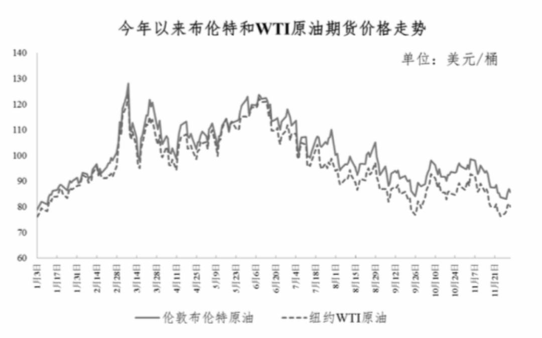 国家发改委价格监测中心预计,短期内油价可能震荡加剧。12月2日,七国集团、欧盟均同意对俄罗斯出口原油设置每桶60美元的价格上限,俄罗斯声称将对此进行反制。国际能源署预计明年一季度因禁运和价格上限,俄罗斯原油产量将减少200万桶/日。“欧佩克+”月度会议维持当前生产计划,并未实施新的减产措施,目的在于平衡油市。综合来看,全球原油供应仍然较为脆弱,不确定因素较多,各方博弈将导致市场价格波动加大。
