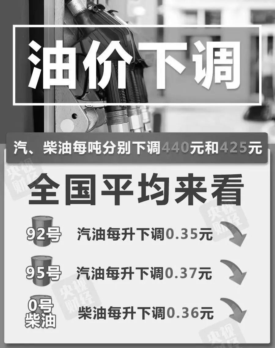 央视财经记者从国家发改委获悉,受国际油价大幅下跌影响,国内成品油价格连续第二次下调,部分地区92号汽油重回7元区间。本次油价调整具体情况如下:国内汽、柴油零售限价每吨分别下调440元、425元。