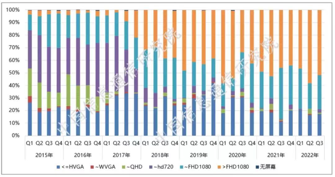 根据中国信息通信研究院统计分析,2022年第三季度我国上市的手机中,高清手机(HD720及以上)款型占比为81.7%。5G手机高清款型占比为100%,4G手机高清款型占比为75.9%。