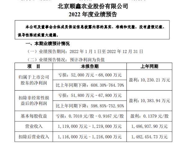 顺鑫农业2022年度业绩预告显示,2022年预计营业收入为111.9亿元至121.9亿元,上年同期为148.69亿元,净亏损5.2亿元至6.8亿元。顺鑫农业将亏损原因归于计提资产减值及疫情影响。蔡学飞分析称,整个中低端酒类消费都在萎缩,这是牛栏山业绩下滑的原因之一。