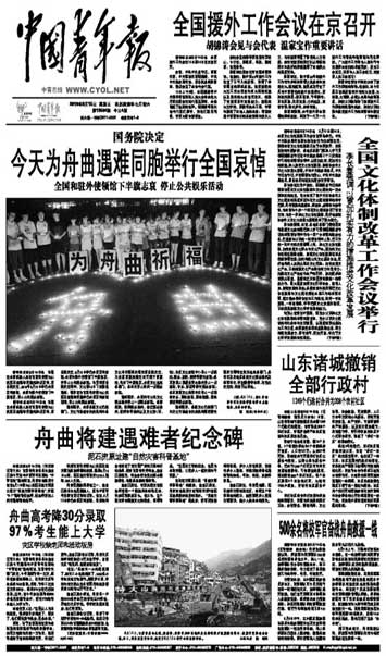 中国青年报2010年8月15日头版