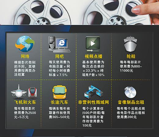 日前,中国电影著作权协会向国家版权局上报《电影作品著作权集体管理使用费收取标准》,拟向视频网站、网吧、长途汽车等收取电影版权使用费。《使用费收取标准》已在国家版权局网站进行了公示。