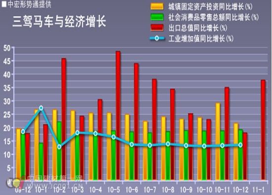 2010年社会消费品中,珠宝类增长46.0%,家具类增长37.2%,汽车类增长34.8%,家用电器和音像器材类增长27.7%。2011.1-6月,社会消费品零售总额8.6万亿元,同比增长16.8%。