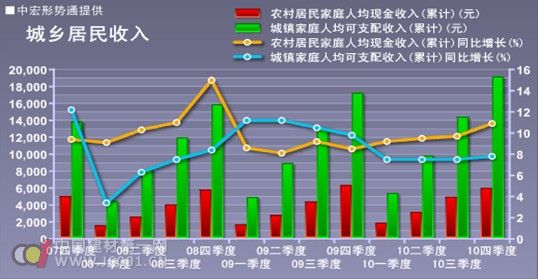 2010年,城镇居民家庭人均可支配收入19109元,同比增长7.8%。农村居民人均现金收入5919元,同比增长10.9%。2011年1-6月达到13.7%。