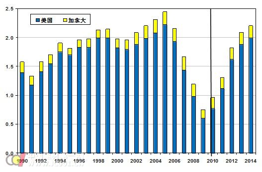 北美房地产从2010年开始回升,预计到2015年可恢复到2005年的最高点。