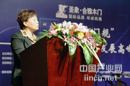 住房建设部政策研究中心副主任秦虹在论坛上就木门发展前景、木门标准的意义等问题做了主题发言。