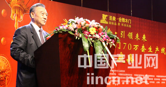 各位嘉宾、女士们、先生们、我非常高兴,应邀来参加我们圣象•合雅木门70万套木门生产线的投产典礼和高峰论坛的召开。刚才开幕之前,战鼓催人奋进,特别是圣象•合雅木门他们提出的口号就是“绿色使命•引领未来”,而且又提出来国际品质,环球风情,我认为这是我们这个公司,去引领绿色、环保、低碳、循环经济的未来。圣象是国内一家知名的企业,圣象品牌在国内甚至国际很有名气,他们按照我们国家政府的要求,大力进行产业结构的调整,坚持走自主创新的路线,他们研制的新的这种木门,不但满足或者弥补我们市场的需求,同时也节省木材。