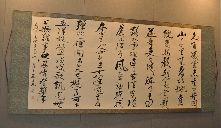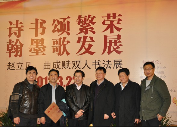 据了解,本次画展是由中国文化信息协会,中国两岸书画院主办,北京翰墨天地文化艺术发展中心承办的一次大规模诗书展,旨在通过赵立凡,曲成赋两位先生诗词及书法作品的展示,体现中国文化艺术的繁荣,以及老一辈书法家和青年书法家刻苦钻研艺术,追求人生艺术至高境界的民族进取精神和书法艺术传承精神。并通过两位艺术家的诗书作品展现祖国的繁荣对中华民族美好未来的抒怀和期待。因此本次展览,文化部中国文化信息协会主办,并积极协调各相关单位给予大力支持,目的是尽可能的让此次书法展在文化艺术界产生更广泛的社会意义。