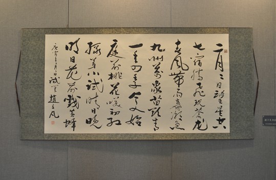 赵立凡先生,勤书勤诗,敬而不废,书道自然,娟秀活泼,即师古而不泥古,从师而没有匠气。诗词亲切细流,大气荡然,爱随意蕴,浩然情深,他的诗书画作品三道合一,表现了对祖国,自然,生活和亲人友朋的热爱。观展嘉宾如此评价说。