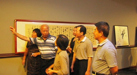 北京军区政治部原副主任陈学政少将、海军装备部原部长陶景顺少将。铁道部原副部长国林、农业部原副部长宋树友,中国书协理事孟令芳、倪进祥,中国楹联学会会长孟繁锦、光大银行控股公司董事长陈柳、中外名人文化产业集团总经理汤玲等100多人出席并观摩了书画展。