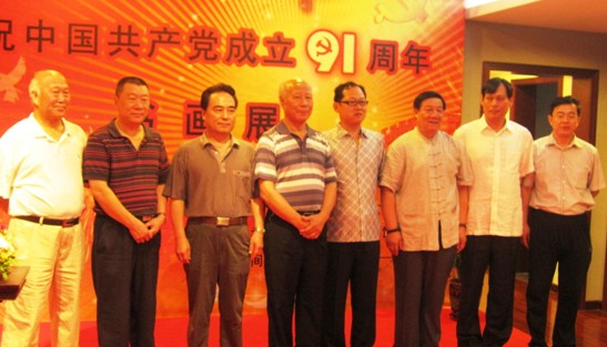 中国产业报协会网、中国产业网联合讯:中国榜书艺术研究会“庆祝中国共产党成立91年书画展”7月14日在京举办。军事科学院原政委张序三中将、国防大学原政委赵可铭上将、军事科学院原副政委糜振玉中将、济南军区原副司令员郭玉祥中将、原中国文联原副主席、党组副书记高运甲、著名书法家,中国榜书艺术研究会会长李力生、副会长冯青春、中国榜书艺术研究会副会长兼秘书长苑建国等书法艺术家出席。书画展汇集了研究会副秘书长以上领导的80余幅真草隶篆、小字有榜书、国画、油画等作品。