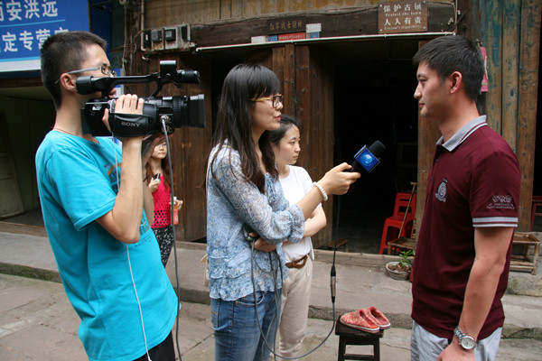 传媒大学2011级国新班学生在丙安古镇采访基层干部